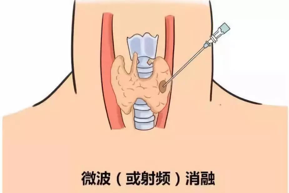 微波消融术就是将一根尖端带有“微型微波炉”的特制钢针,经皮穿刺到肿瘤中心区域,释放微波使肿瘤组织产生高温,凝固坏死,之后机体吸收清除坏死物,使病灶缩小,甚至完全消失,从而有效治疗疾病。目前,甲状腺结节微波消融术的适应症包括:1)、超声提示良性且细针穿刺证实为良性的结节,有以下情况者,可考虑消融术:a)、影响患者颈部美观,且有强烈的美容需求,拒绝外科手术者;b)、结节本身较小,可随访观察,但因患者思虑过重,影响正常生活者;c)、患者合并内科疾病,难以耐受全麻手术者。2)、对于不能耐受外科手术的甲状腺癌患者,术后出现复发、患者拒绝接受重复外科手术,也可通过微波消融手术控制病情发展,延长患者的生命。