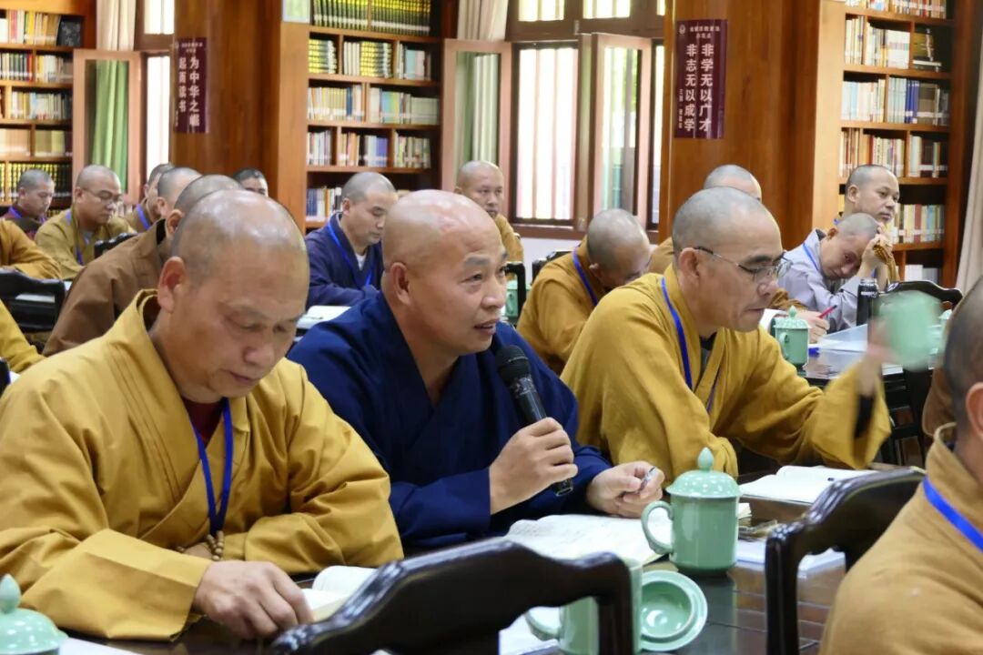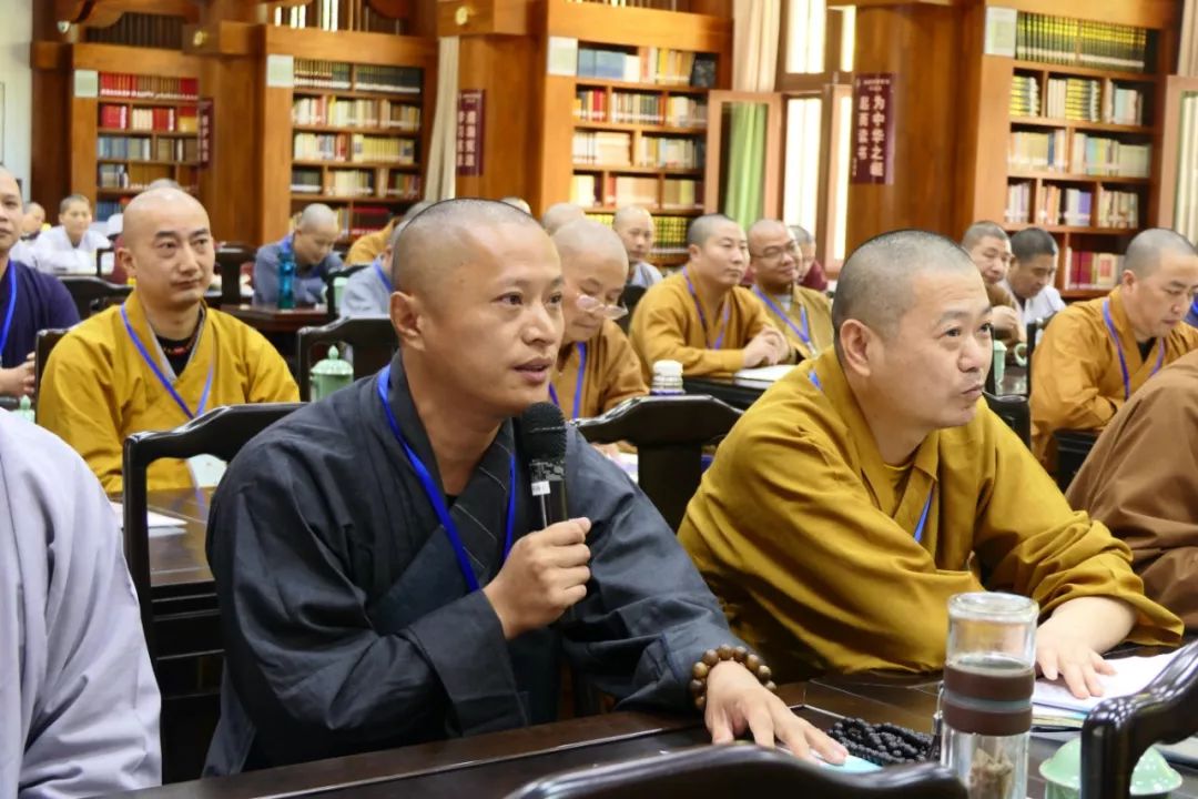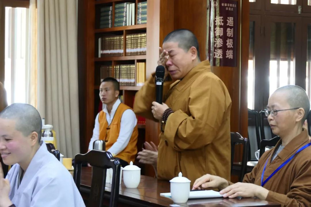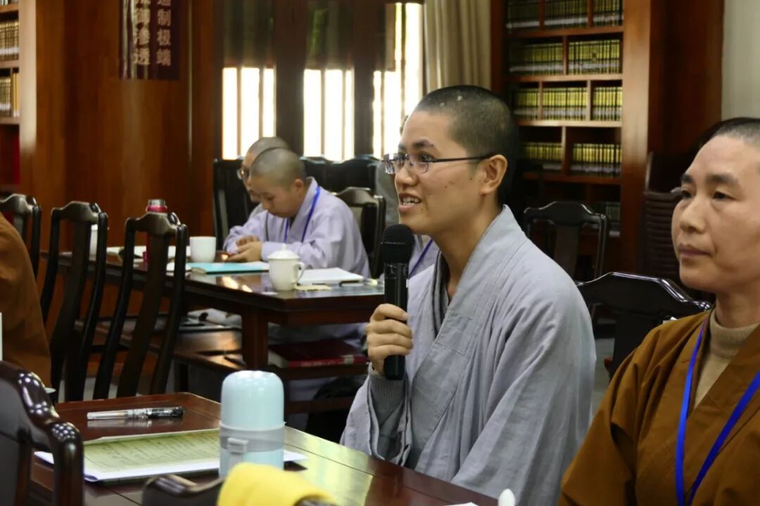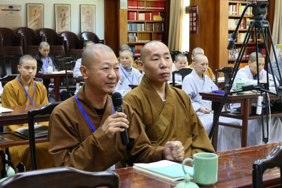 首先,温州佛学院教务长则庄法师就培训班的总体学习情况做了汇报。则庄法师从出勤、纪律、考核成绩等几方面概括了本次培训学习的整体情况,赞叹表现优异的学员,也客观地指出了需要改进之处。