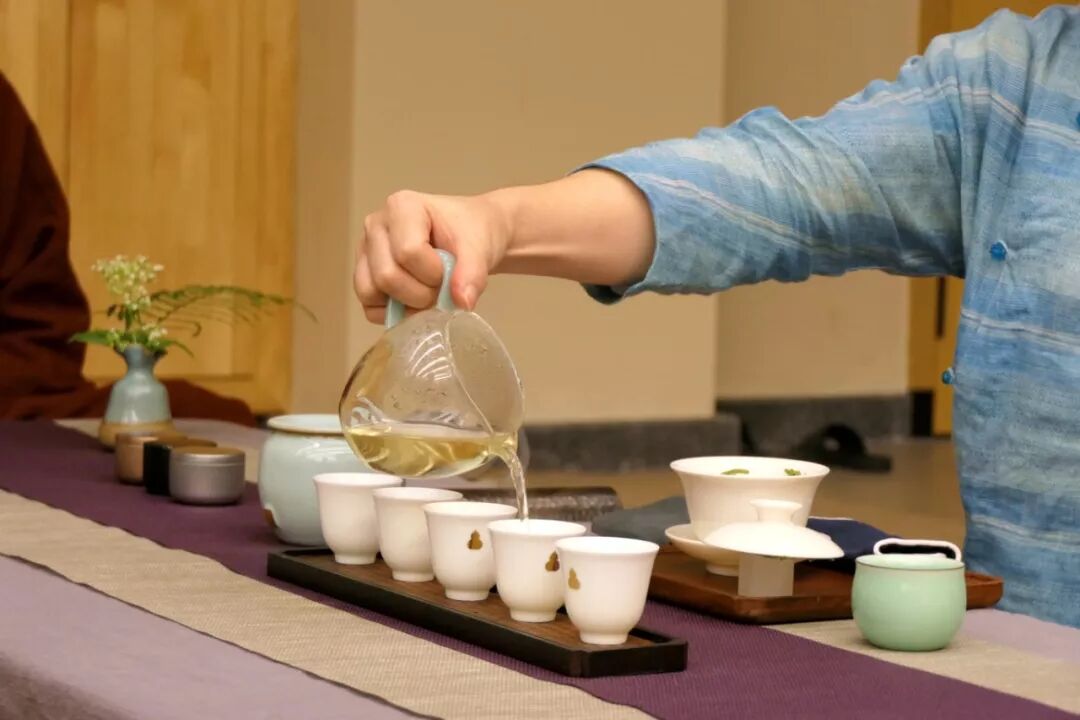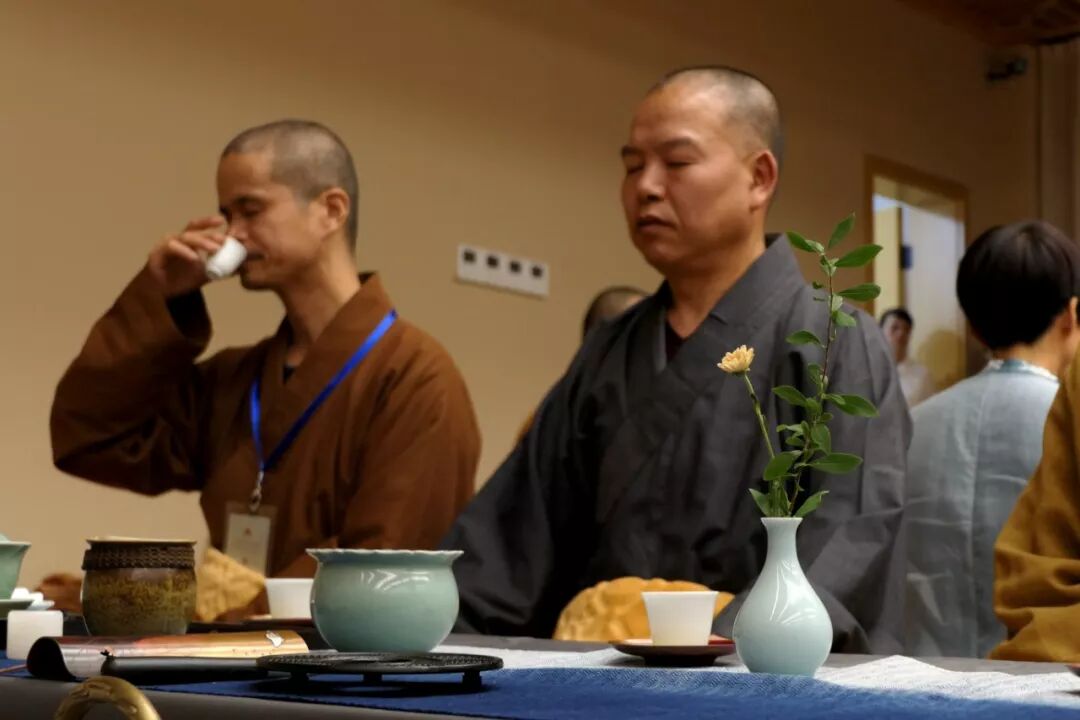 10月24日,夜幕降临时分,由安福寺禅修中心负责人则诵法师负责指导的禅茶会在利生楼禅堂开启了。茶叶浮浮沉沉亦如人生,观茶明心,心无挂碍,任云卷云舒,无悲无喜。大众以“喝茶还是茶”的意境,体悟茶即是心,心亦茶。通过品味禅茶,学员们品味自己的本心。