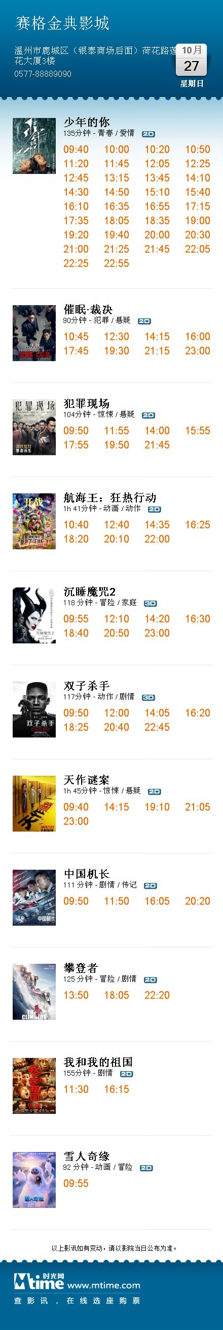 温州赛格金典影城2019年10月27日-10月28日影讯