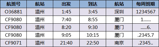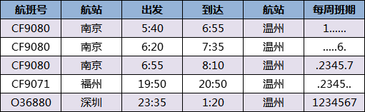 温州机场2019/2020年冬春航季进出港航班时刻表