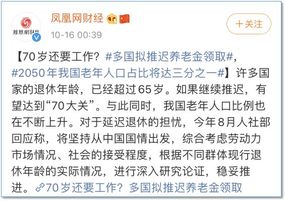 最近一条#多国拟推迟养老金领取#的消息引起了大家的关注,许多国家的退休年龄都已经超过了65岁,继续推迟即将超过70岁,这让那些年纪轻轻就想着退休的上班族瑟瑟发抖,本来以为熬到55岁或60岁就能开启另一段幸福生活,结果突然被告知要工作到70岁?