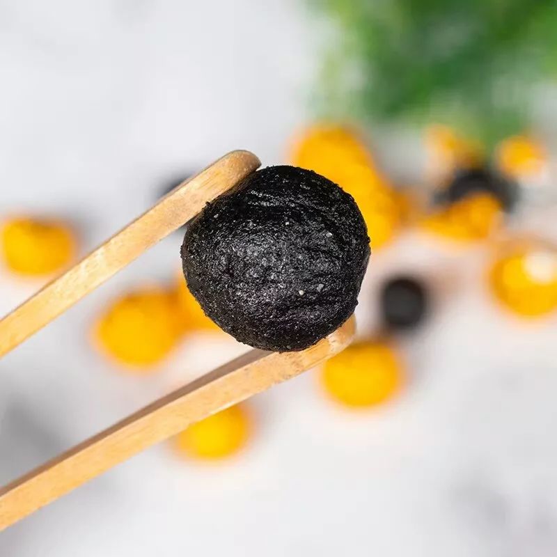 黑芝麻丸吃起来很糯嘴,也不散行,还能看到黑芝麻的颗粒。