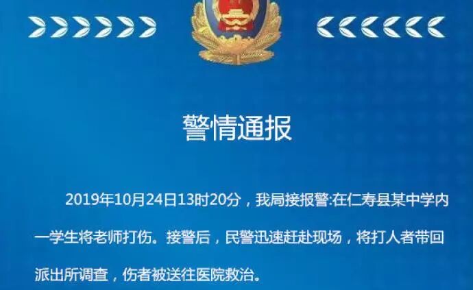 四川警方通报老师被学生打伤头部住进ICU:涉事学生被刑拘