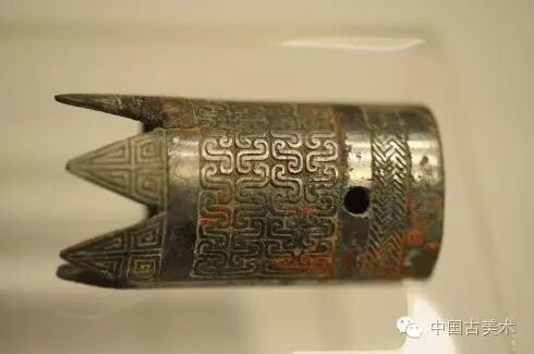 戈,中国先秦时期一种主要用于勾、啄的格斗兵器。流行于商至汉代。这件错金银鸟形饰铜戈出土于西汉翠屏山刘志墓,在铜戈的上面用一直鸟来装饰,鸟作回首状。所谓错金银就是把金银涂画于青铜器上的意思,这只错金银鸟形饰铜戈可以是汉代金属装饰工艺和兵器制作工艺的完美结合体。