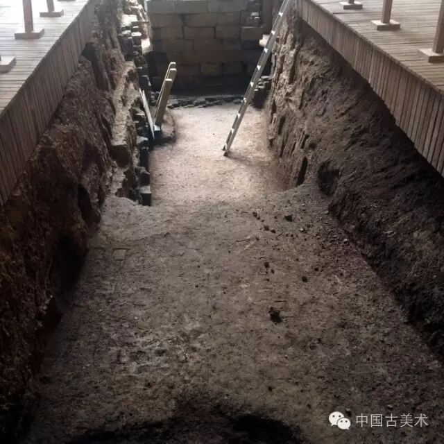 四号墓由长的斜坡墓道、甬道和墓室组成。墓室长、宽均约17米,有前室、左右耳室和后室。墓葬已被严重盗掘,仅出土少量陶器和封泥。