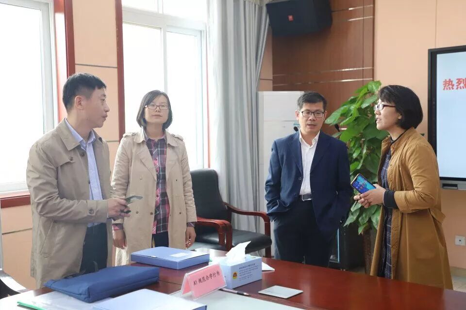 市督查组领导听取田校长对校园文化和学校党建工作的介绍。