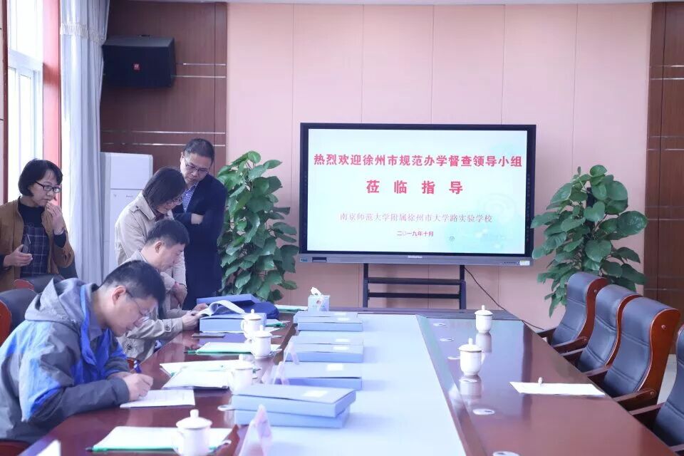 2019年10月 25日,徐州市大学路实验学校严阵以待,迎接徐州市规范办学督查组的检查工作。铜山区督查组的吕科长、秦校长等一行人和学校校长田玉龙一起陪同。
