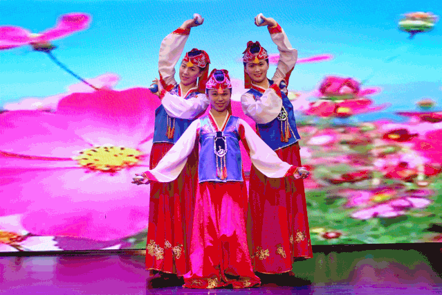 朝鲜族小姐姐表演演绎茶花乐坊的民乐演出