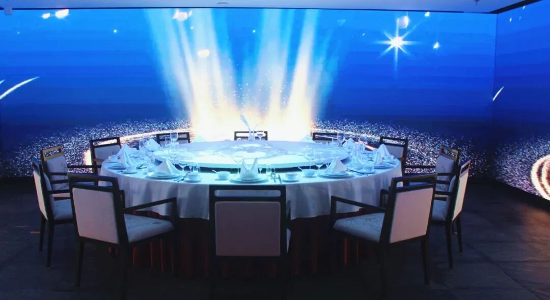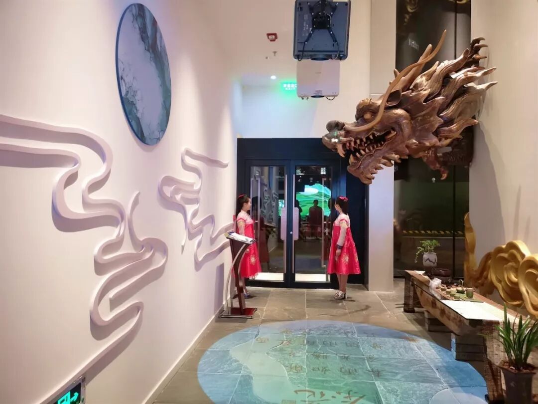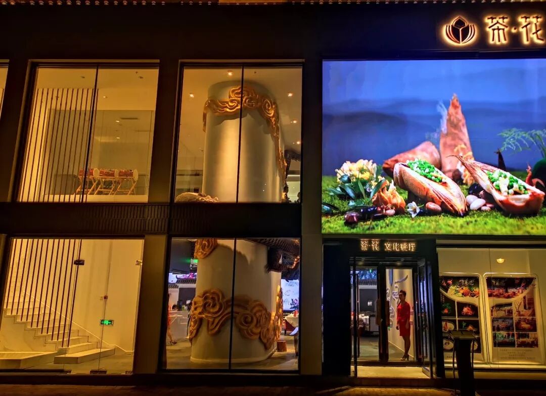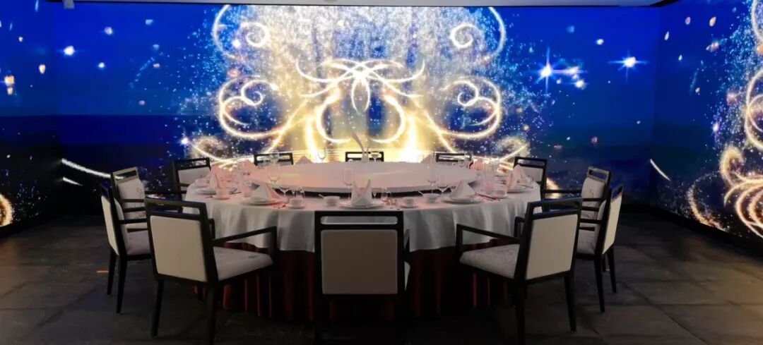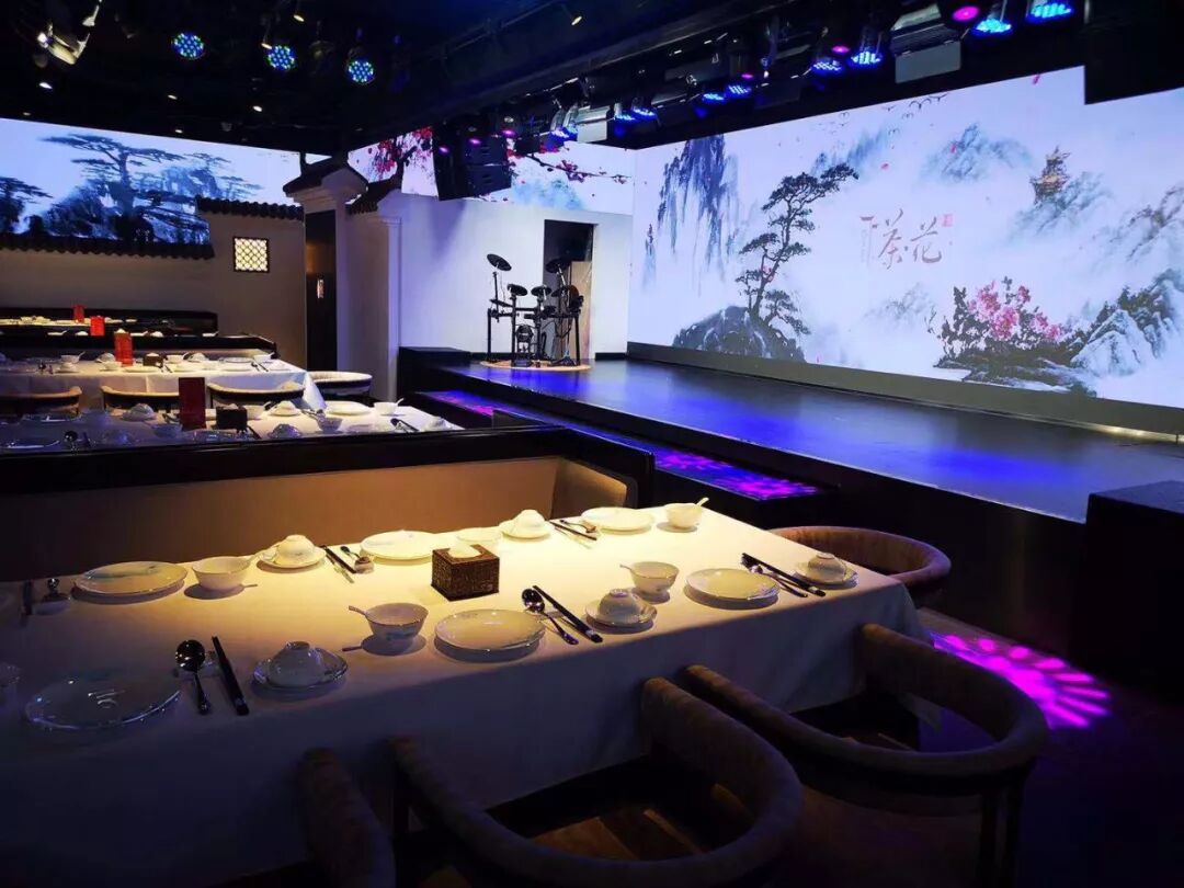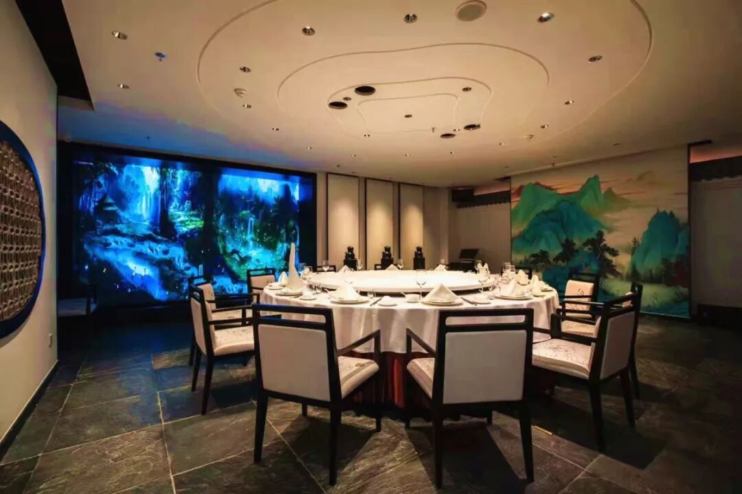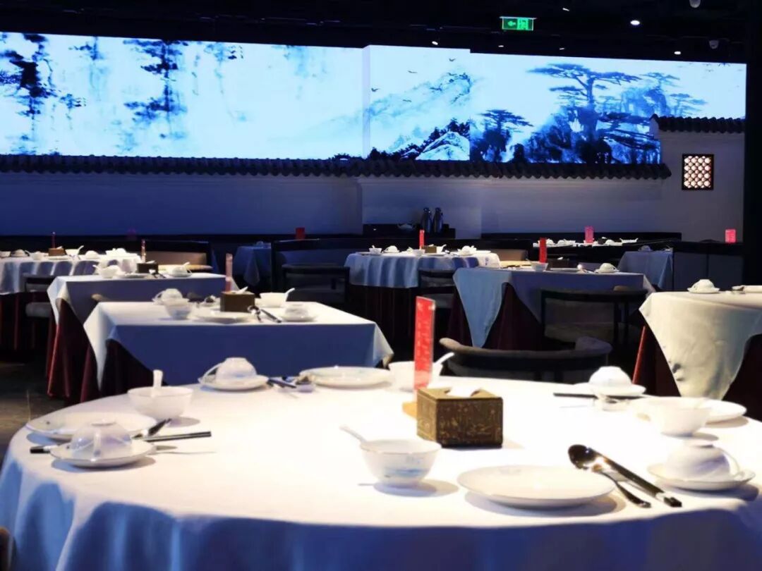 室内中式精致,LED屏倒映出蓝天白云、樱花飞舞~~精致风雅的餐品摆放,一步一景,每一处都美得让人移不开眼。