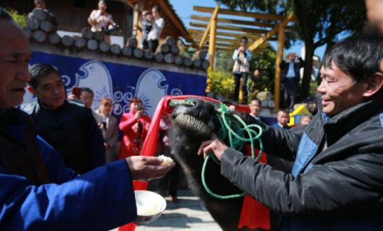 “谢牛”节是当地传统民俗节日,在当地民间传说中,这一天是牛的生日,布依族同胞蒸糯米、打糍粑,并用糍粑、糯米喂饲耕牛,以此表达对耕牛的辛勤劳作的感谢,并祈福来年风调雨顺五谷丰登。