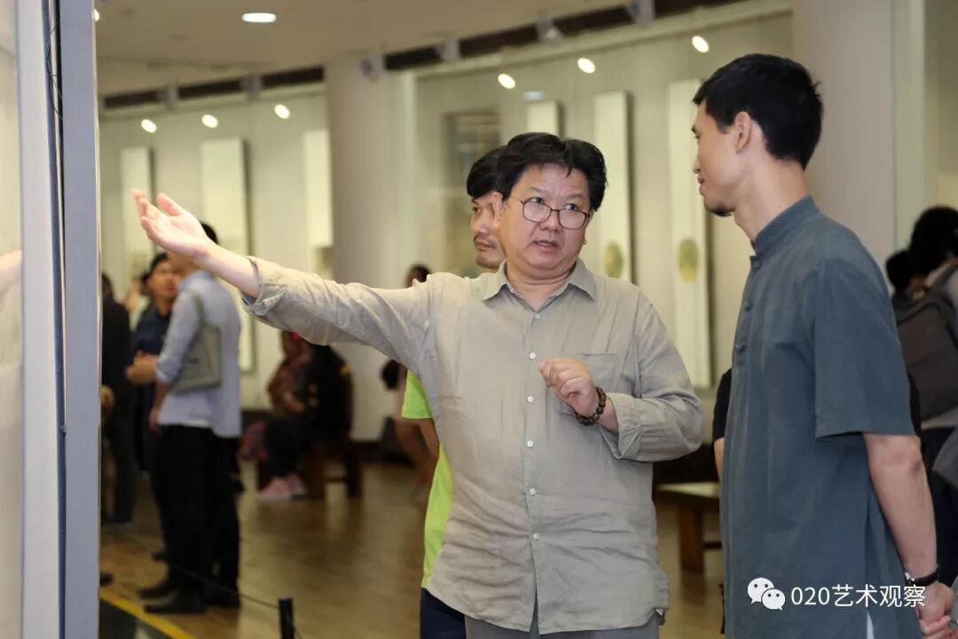 策展人江山主持开幕式,佛山市人大副主任麦洁华,广东省委宣传部文明办副主任马必文,中国华夏文化遗产基金会副秘书长德央,广东省美术家协会副主席、广州美术学院中国画学院院长张彦,广东省中国画学会副会长兼秘书长周正良,佛山市文联主席杨凡周,广州美术学院教育学院原院长龙虎,广东省文联委员 广东省关爱艺术家公益促进会主席何俊华,佛山市文化广电旅游体育局调研员黄曲君,广州美术学院中国画学院党总支书记许敦平,深圳市青年美术家协会理事长徐淑芬,肇庆市文联副主席、肇庆美术馆馆长罗秋帆,骐麟文化产业投资(深圳)有限公司总裁孙俊,佛山市委网信办副主任黎祥英,佛山市文化广电旅游体育局副局长应如军,佛山市文明办副主任周捷,佛山市石景宜刘紫英文化艺术馆常务副馆长谢练军,佛山市艺术创作院院长夏金旺,佛山市图书馆馆长黄百川,佛山市美术家协会名誉主席梁根祥,佛山市石景宜艺术馆副馆长、佛山市书协主席王志敏,佛山市艺术文化创新协会执行会长林文彬,深圳市青年美术家协会会长陈俊宇、秘书长高楠楠,佛山市美术家协会副主席、南海区美协主席黄汝祥,佛山市美术家协会副主席、佛山市书法家协会副主席邱健彬,佛山市美术家协会主席团成员唐秀云、李致宏,广东省中国画学会理事、会员部主任蔡庆洪,佛山市印品堂艺术馆馆长陈利斌,佛山市燃灯山房艺术馆馆长缪斌,佛山市岳阳商会会长叶石兵,中国艺术视频档案总制片汤芬,深圳市拔萃艺术教育集团董事长陈伟伟等嘉宾及艺术爱好者、媒体近200人出席了开幕式。