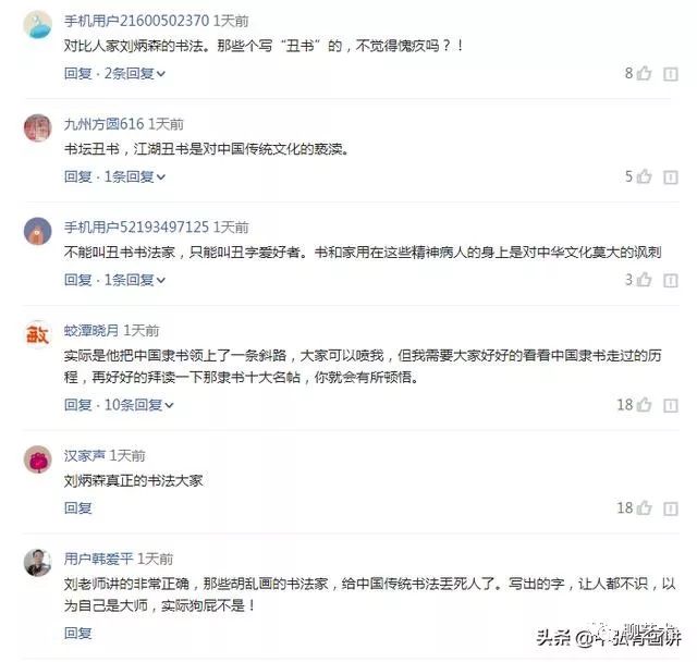本期导读:最近小编写了几篇文章,一方面是关于正常人写楷书的一方面是关于“艺术流氓”写丑书的,为何这样写呢?如果你是我的粉丝,那么你一定会有一个对比。前两天小编写了一篇文章,当时在网上引起热议,并且还被粉丝评为:批判丑书,最彻底,最系统的一篇大作!其实对于丑书,早就想写一篇文章好好的批判下了,因为这是中国最古老的东西。虽然现在有了人工智能,有机器人能写毛笔字,但是机器人写的只能叫毛笔字不能叫书法?刘炳森书法家用四字“数典忘祖”痛骂丑书,网友都是什么反应呢?今天小编也总结了下,在文章中会截图给大家讨论。今天小编的主题是:丑恶假的丑书你究竟还能走多久?