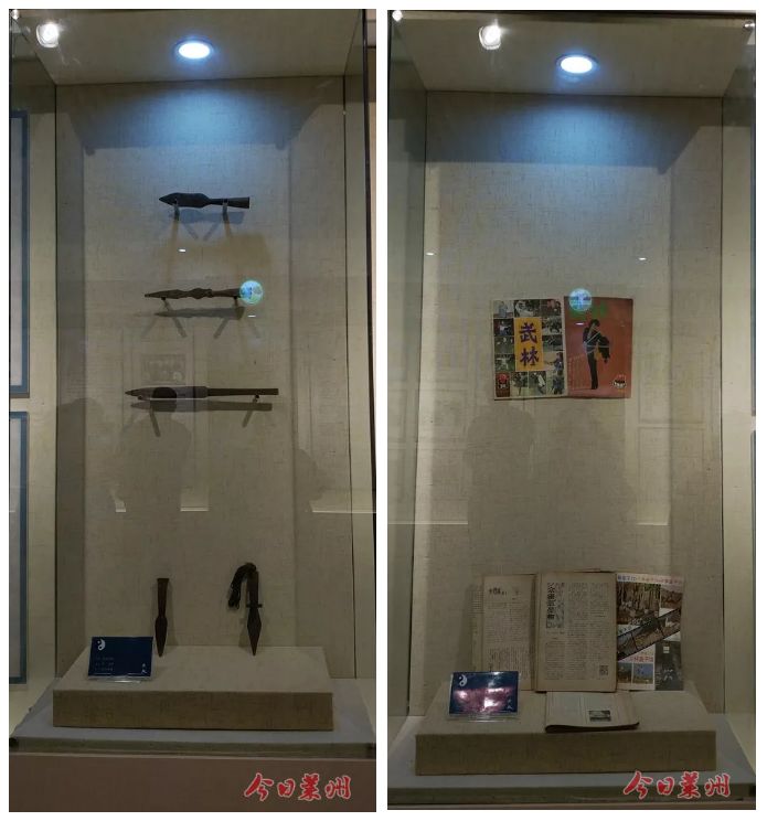 徐徐走进展厅,可以看到一面面关于太极文化的展示墙,以及太极鞭、太极剑等展示品。
