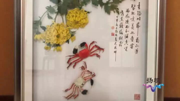 2007年,扬州通草花制作技艺入选江苏非物质文化遗产名录。通草花作品《蟹菊图》曾获得江苏省工艺美术品大赛银奖,这是周春涛创作九个月才完成的,其中螃蟹的制作花了五个月时间。这些螃蟹在没有固定之前,每一个指节都可以活动,能摆出各种各样的形态。周春涛说,在制作之前,他特地买来三只螃蟹,每天都仔细观察,研究螃蟹活动的特点。