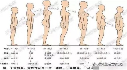 雌性激素过低,形体走样,喝水都长肉,怎么吃都不长肉。易得骨质疏松。要大量吃雌性激素多的东西和钙。30岁以下不要靠保健品,缺钙多喝牛奶,30岁以上吃钙片。大豆异黄酮不是什么人都能吃的。缺什么补什么。