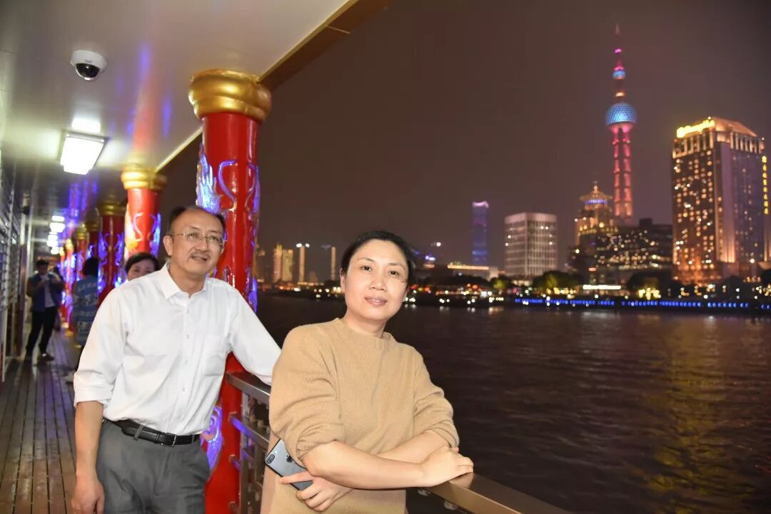夜色璀璨中游船缓缓划过映在江面中的倒影无比梦幻,岸上的“万国博览建筑群”犹如一个电影的长镜头一帧帧地回放上海的峥嵘往事。学员纷纷拍照留念。