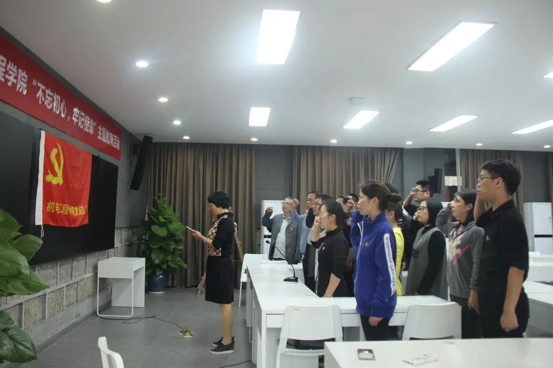 参观完南北校区后,全体党员来到了乡村振兴学院学员培训室分享心得体会,畅谈参观感想;并举行庄严的入党宣誓,面对党旗重温入党誓词。