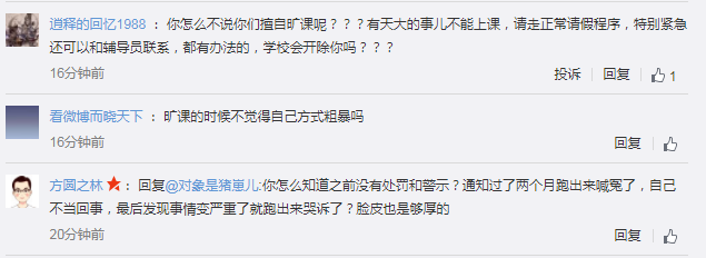 有人说:这位同学旷课知道自己是错的,但是没想到后果这么严重。