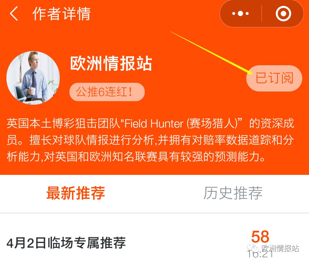 第二步:点击“订阅”,不遗漏每一次的【欧洲情报站】推荐