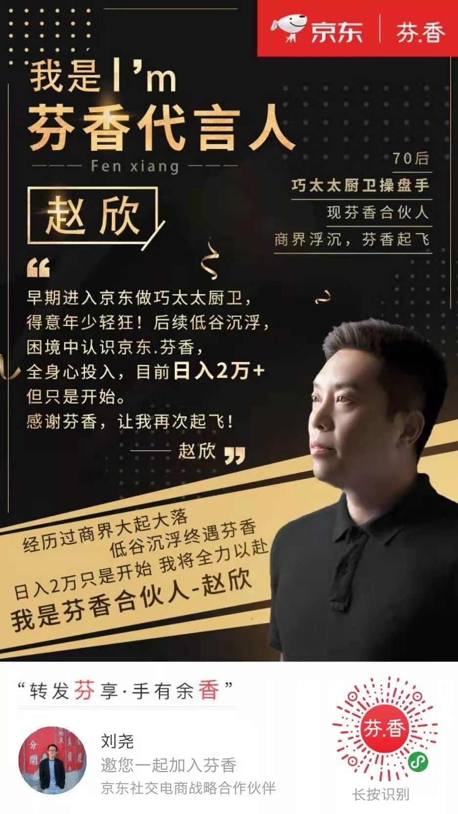 4.资本优势: 腾讯为京东第一大股东,持股占比21.25%。因此在微信内发出的所有京东商品链接均可以直接点开购买。腾讯的支持让京东在微信中拥有更加卓越的用户体验。 为什么说现在是商机呢?互联网时代先进者,先推广者,永远掌握先机京东.芬香社交电商京东便利店的虚拟版商场帮你开好,客服帮你请好物流帮你找好,质量帮你抓好利润帮你算好,加入就做店长卖得出去利润是你的!卖不出去商品是厂家的!所有费用开支都是公司的!5.如何加入?扫码下图小程序免费加入芬香,实现零成本做店长。我只花了30秒就选择京东·芬香,为什么?
