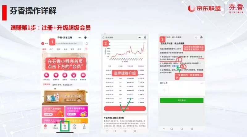 2.京东和芬香的区别: 京东是传统电商,消费者只能是消费者 。芬香是会员制电商(社交电商),消费者开通会员后,可以分享平台产品赚取佣金,相当于这个线上超市是会员自己开的。核心创始团队全部来自京东,集合研发、产品、商务、运营的核心优势。