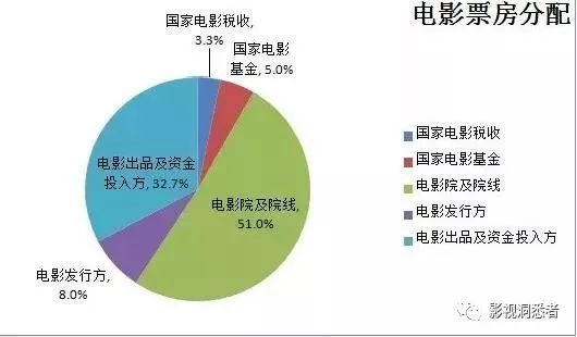 首先是上缴税务,依法纳税是必须的。根据国家规定,票房首先要交纳3.3%的特别营业税,5%的电影事业专项资金,这是上交国家的部分,扣除这两项之后,就是电影院和制片方的共同所得,这剩余的91.7%认定为一部电影的“可分账票房”,金额如下:
