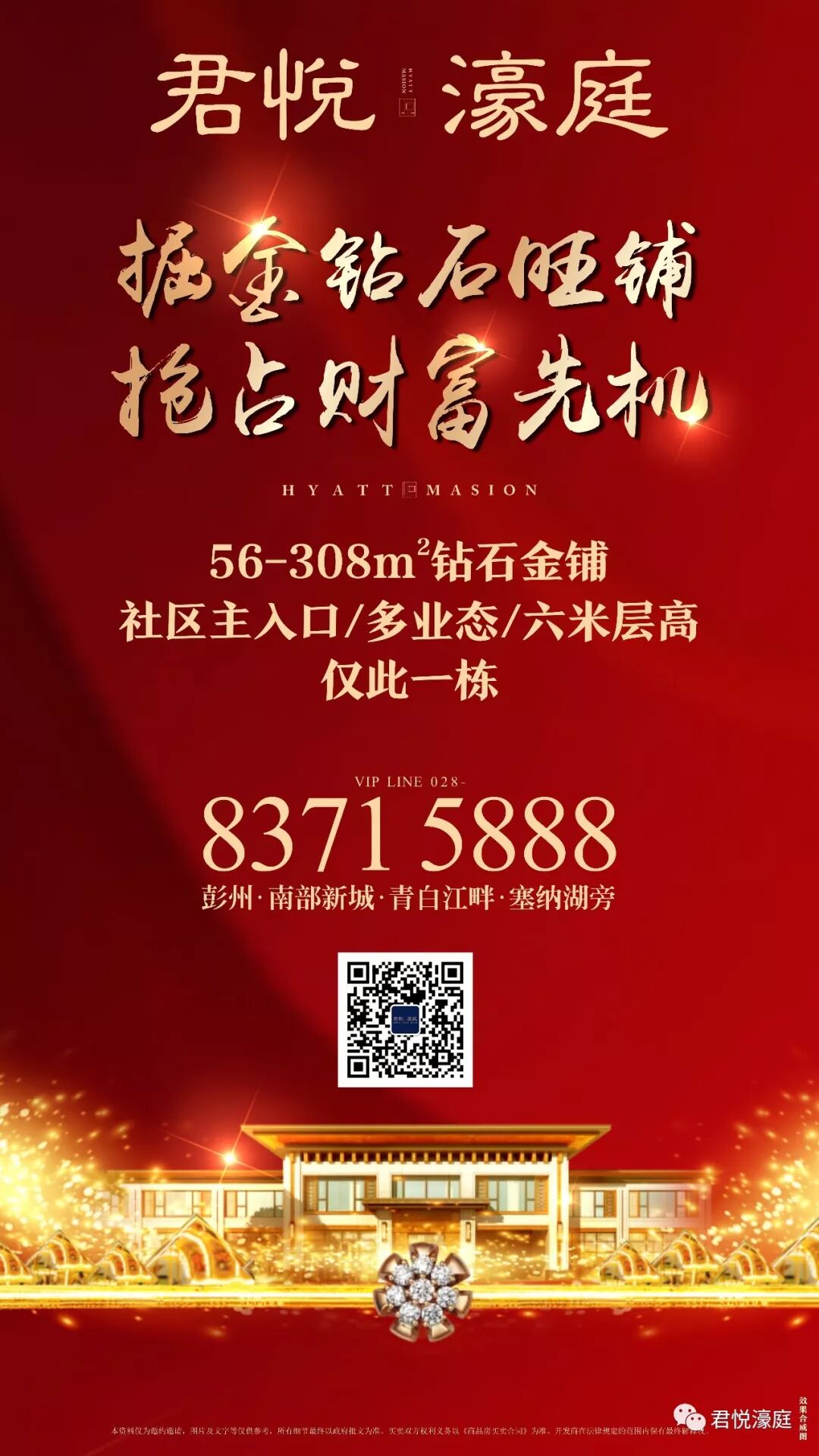 君悦濠庭钻石金铺,临街,便意味着展示面良好,直面客群,更利于商家经营;纯临街现铺,昭示性好,面积段为56-308㎡,业态丰富,一楼6米层高,灵动空间可变性大,超大面宽设计,地段优越、交通便利、人气旺盛,自由打造经营空间,轻松打造更高体验的消费环境,自用、出租皆宜,收益有保证,回报看得见,轻松实现财富梦想!购铺无压力,轻松解放城市投资欲望。