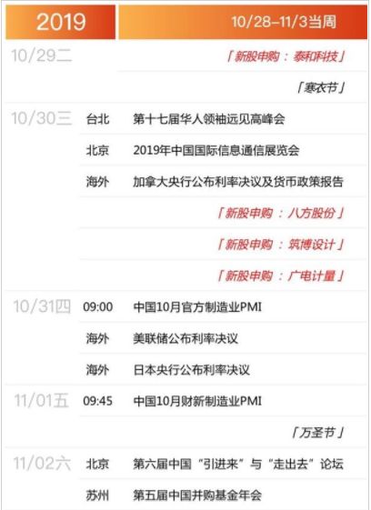 新的交易周(10月28日-11月1日)即将来临,具体股市投资大事件和看点这里和大家细细分享: