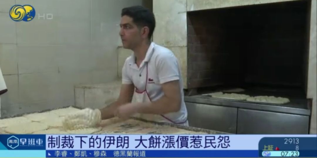 在伊朗,作为老百姓最基本的生活必需品的大饼,一直保持低廉的价格。但是由于制裁,伊朗通货膨胀持续、物价飞涨,伊朗大饼也开始涨价,制裁让民众生活更艰辛。伊朗通货膨胀持续,水、电、气、面粉等价格不断上涨,大饼价格也不断上涨,让一些民众感到担忧。据伊朗半官方mehr通讯社报道,政府将近期取消对大饼手工作坊的所有补贴,这也将使大饼进一步涨价。但这也引起了一些强硬派议员的反对。(凤凰卫视李睿、郑凯、穆森 德黑兰报道)
