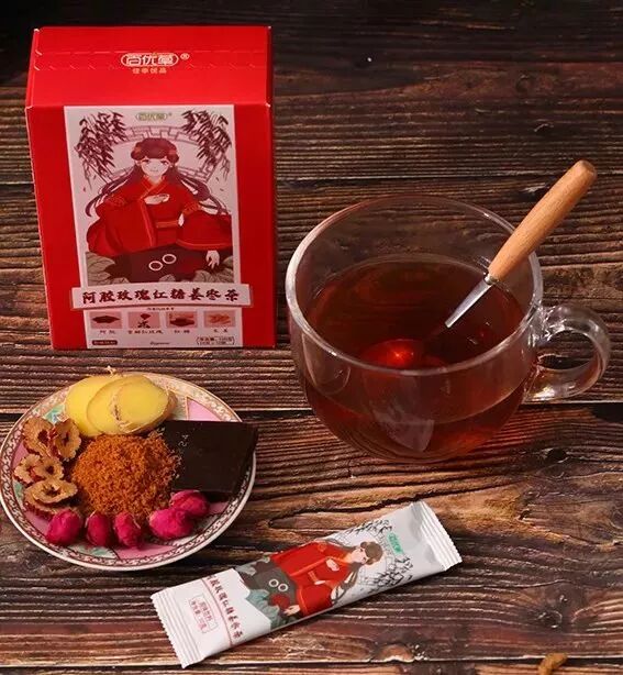 阿胶玫瑰红糖姜茶,加入了老姜、红糖、阿胶、蜂蜜、玫瑰和大红枣制成,按照最科学的配比,将补血益气,祛湿排毒的功效最大化,为女性量身打造。