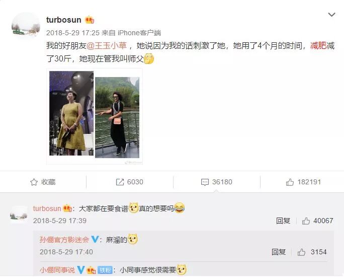 除了帮助经纪人成功减重,她还帮助朋友在4个月的时间内,瘦下来30斤,并且坦言在朋友减肥的过程中充当师傅的角色!