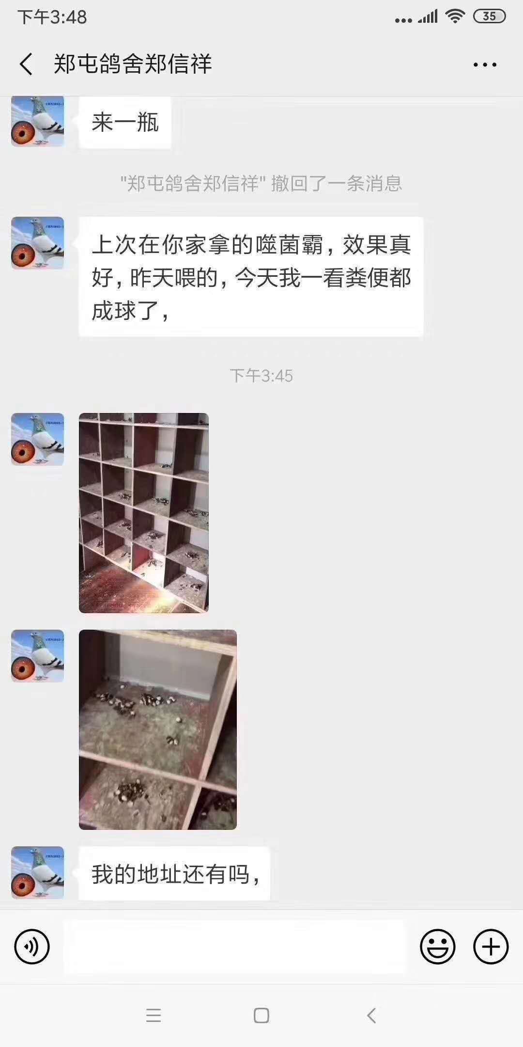 种鸽:配对期及孵化期至幼鸽出巢前,每天使用,鸽子粪便成型,胃肠功能好,幼鸽强壮。
