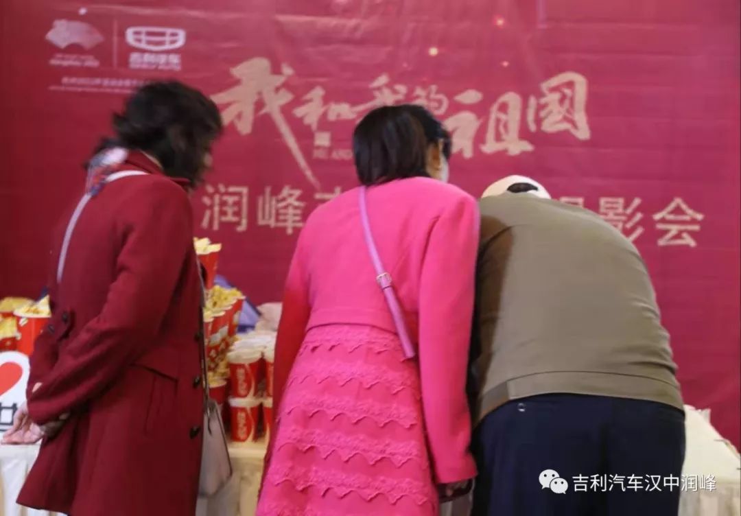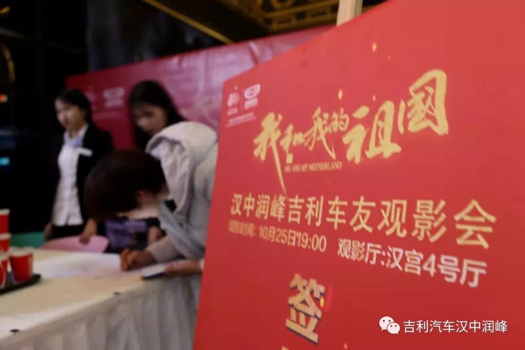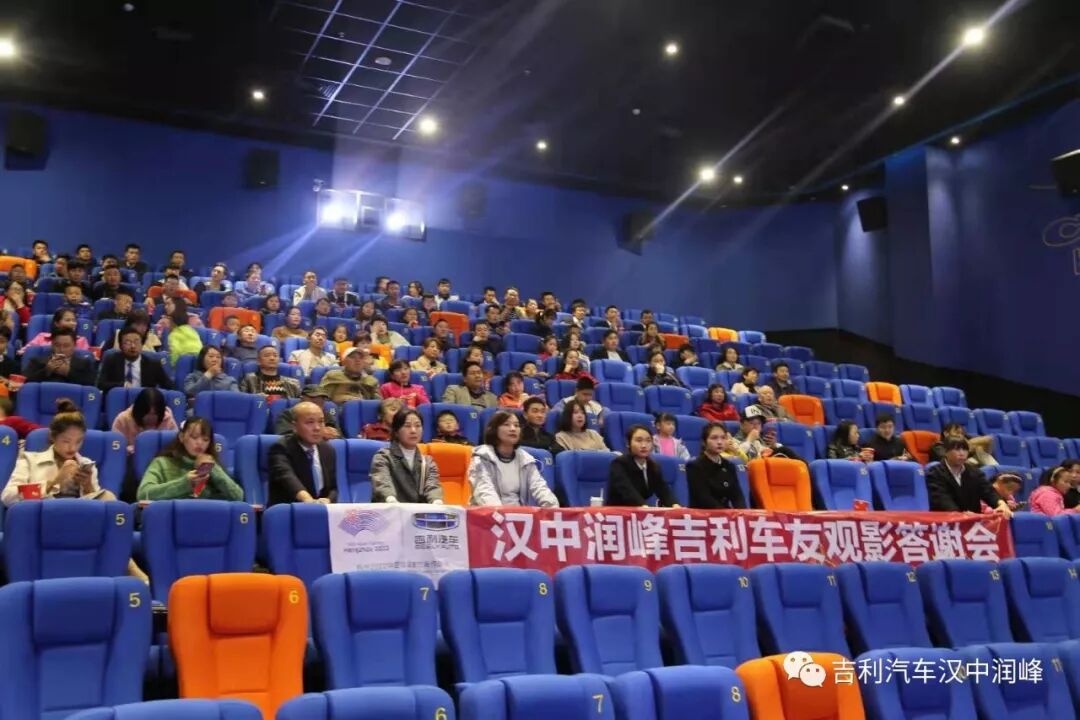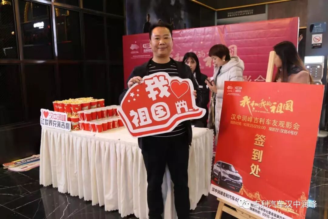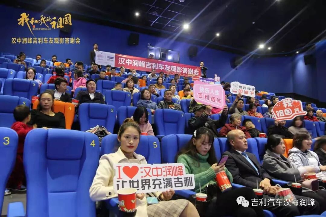 为答谢各位车主对汉中润峰及吉利汽车的信赖与支持,10月25日,汉中润峰吉利汽车4S店在汉宫影城举办了《我和我的祖国》吉利车友观影联谊会,本次活动得到了广大车友的一致好评!