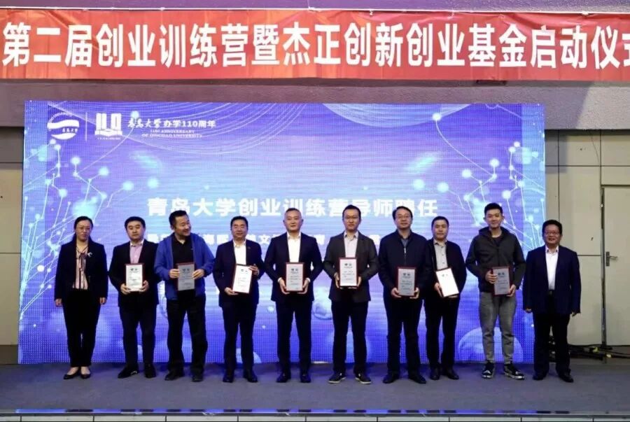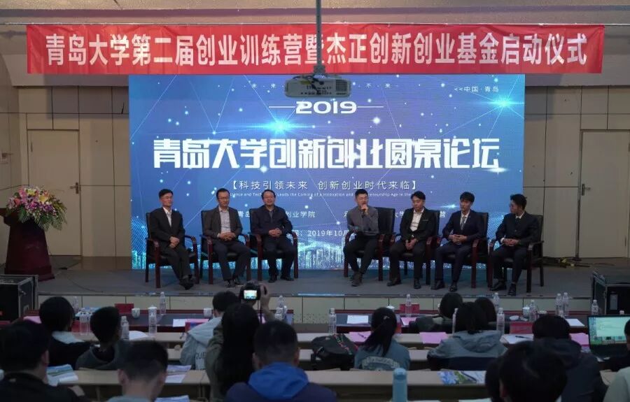 2019年10月26日上午9:00,庆祝合并办学110周年,青岛大学创业训练营暨杰正创新创业基金启动仪式在浮山校区图书馆报告厅举行。校党委常委、副校长、创新创业学院院长孔伟金、杰正投资集团有限公司董事长、青岛大学校友企业家俱乐部执行理事长 方海晖,创益邦董事长、青岛大学校友企业家俱乐部副理事长姜文博,中国“互联网+”大学生创新创业大赛专家委员会委员张健君,青岛华赛伯曼医学细胞生物有限公司董事长高青,青岛泰和系统工程有限公司董事长徐东,山东奥美文化发展股份有限公司董事长、青岛大学校友企业家俱乐部副秘书长王晓波,海宴文化产业集团有限公司董事长、中国“互联网+”大学生创新创业大赛国赛评委范旭,校有关职能部门负责人、部分学院分管领导出席活动启动仪式。