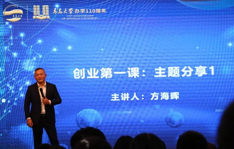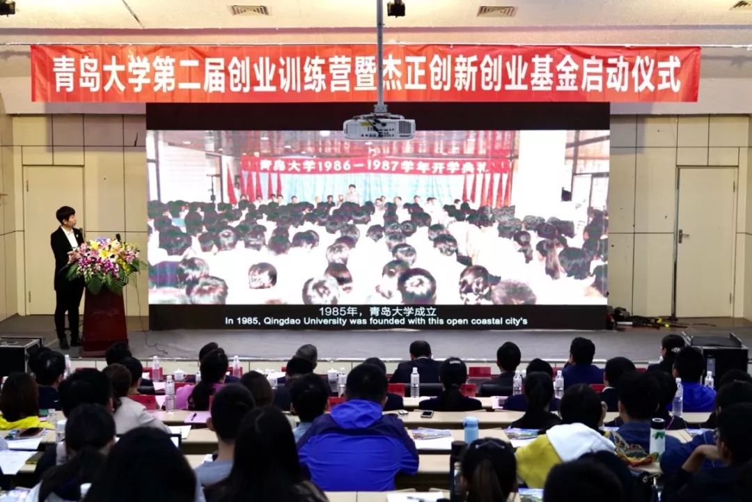 在青岛大学办学110周年之际,现场领导、嘉宾与近200名创业训练营成员认真地的观看了青岛大学办学110周年宣传片。宣传片展示的青大悠久的历史、深厚的文化底蕴,良好的社会声誉和宏伟的办学目标,深深地打动了在场的每个人。