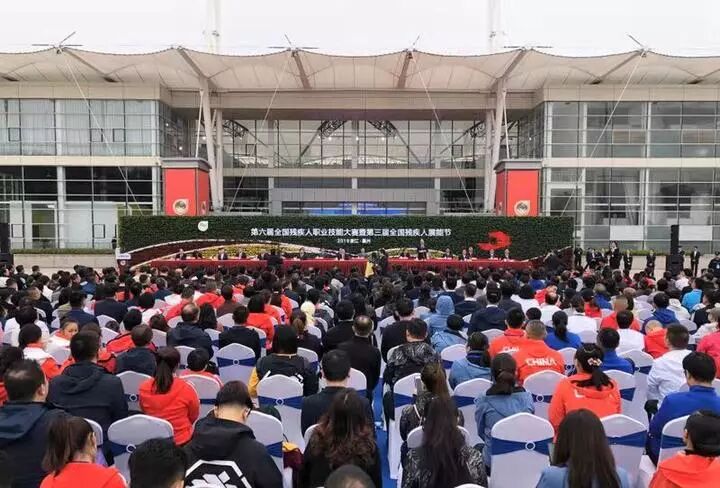 今天上午,第六届全国残疾人职业技能大赛暨第三届全国残疾人展能节开幕式在嘉兴国际会展中心举行。