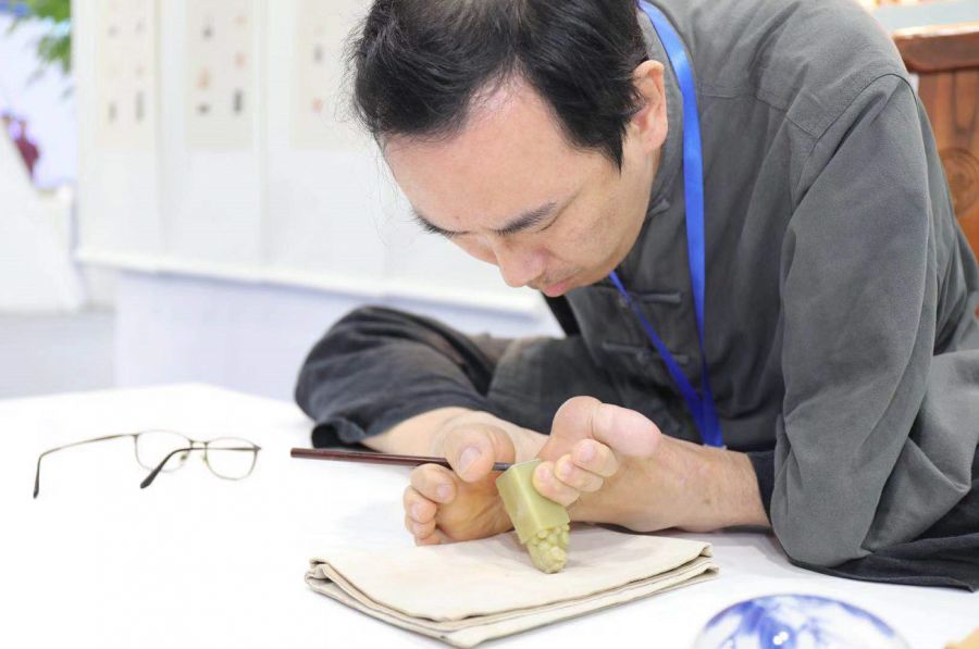 综合展区集中展示建国70周年以来全国残疾人就业和文化工作成就,还有28位来自全国各地的残疾人代表为大家现场展示书画、剪纸、沙画等才艺。