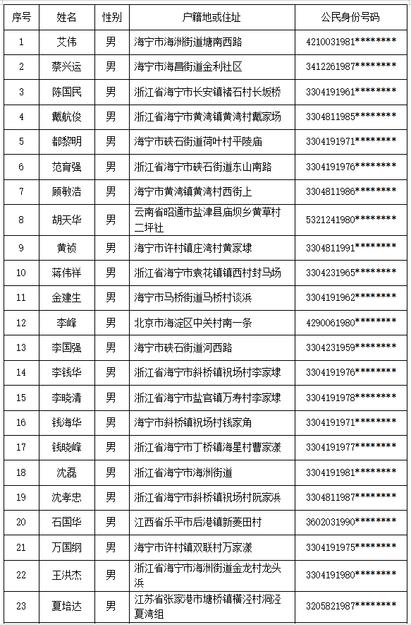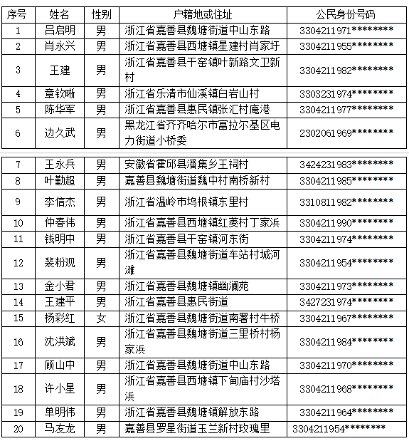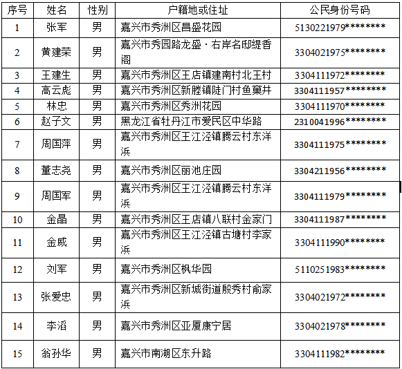 嘉兴市中级人民法院公布了最新一批
