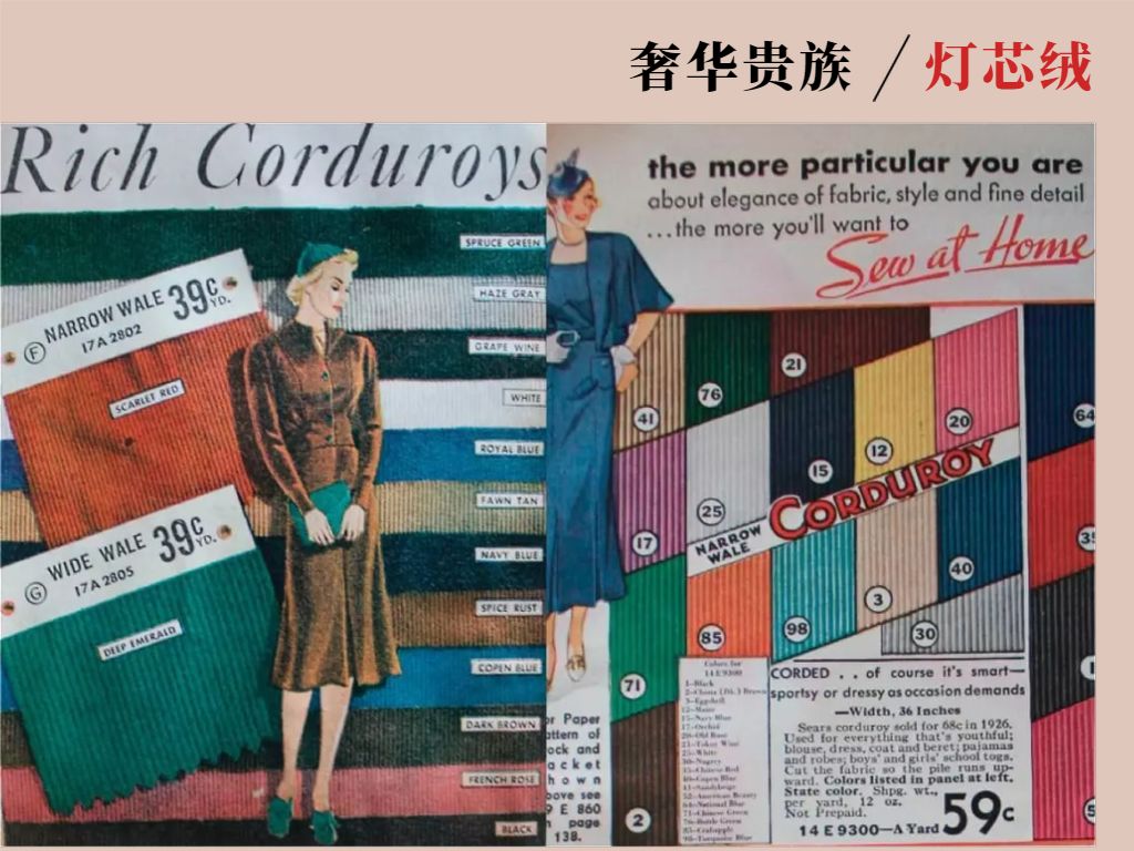 可以说,在欧美复古单品的风吹浪潮中,灯芯绒始终是奢华昂贵的代名词。也正因为棉质灯芯绒的耐用性,使它成为日后很长一段时间里高频使用的成衣面料。