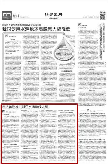 浙江是法治中国建设先行区,生态环境领域立法亦走在全国前列。