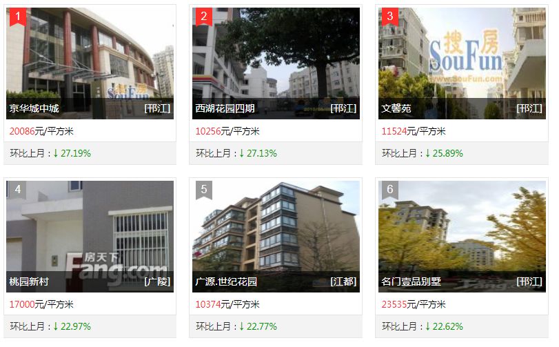 我在房天下发现,在二手房降价榜中,不少小区环比上月的房价降幅惊人!以榜首京华城中城为例,环比上月降幅27.19%,还需要20086元/㎡!