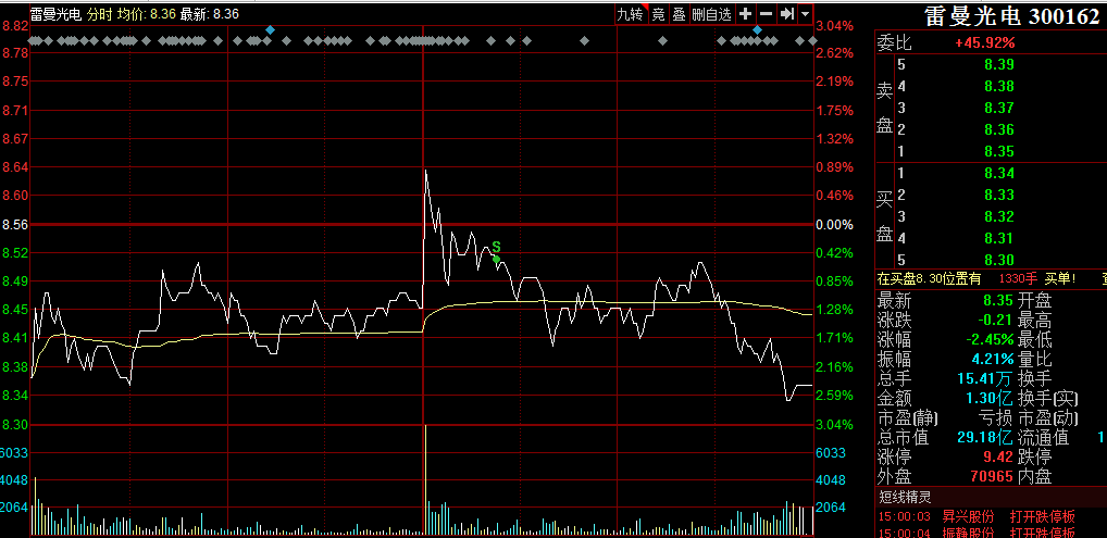 3、雷曼光电今日卖出,整体微利4.3%左右。