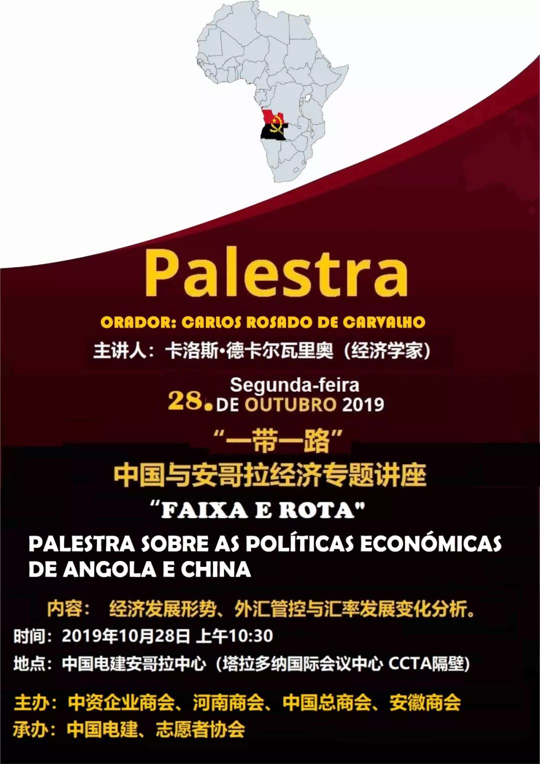 此次讲座主要针对安哥拉未来经济政策和外汇管理进行分析。通过该讲座,华人同胞可以根据讲座内容进行相应的业务升级。在此,邀请在安各个商会、团体、个体经营者前来参加《“一带一路”中国与安哥拉经济专题讲座》。