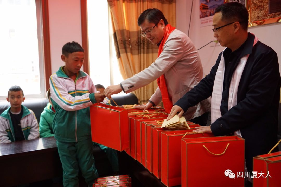 2019年10月22日,厦门大学四川校友会再次来到阿坝藏族羌族自治州黑水县木苏乡中心小学,开展第三期爱心助学行动。四川校友会于2018年发起成立“藏区助学基金”,旨在帮助藏区偏远地区的贫困儿童及其家庭,与孩子们同心协力度过当前学习和生活难关,并于同年在黑水县木苏乡中心小学完成第一期助学款发放,2019年3月完成第二期发放。