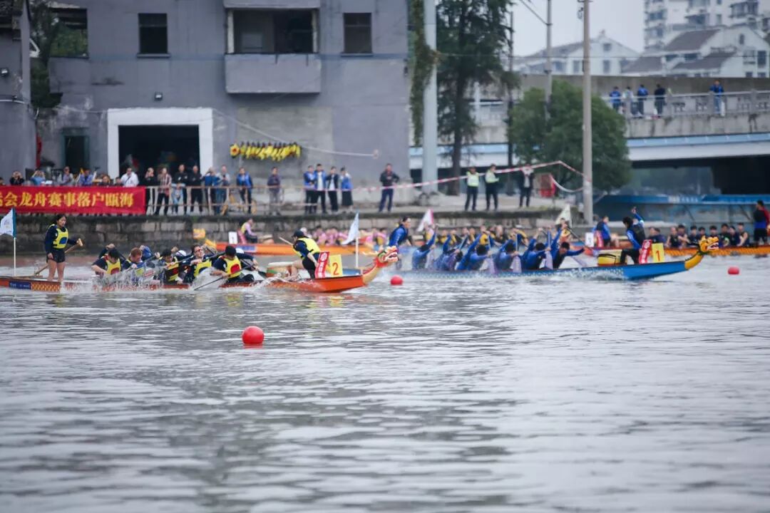 上午9时30分许,宽阔的河面上,蓄势待发的龙舟一字排开,会昌河两岸,观赛市民翘首以待。简短的开幕仪式后,决赛正式展开。伴随着蒙蒙细雨,参赛龙舟如离弦之箭冲向终点,岸上观众不停地喊着加油,展示了温州深厚的龙舟文化和这座城市高涨的热情。