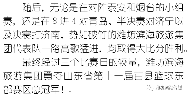 潍坊滨海旅游集团勇夺山东省第十一届百县篮球东部赛区总冠军