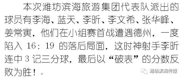 潍坊滨海旅游集团队厉害了!