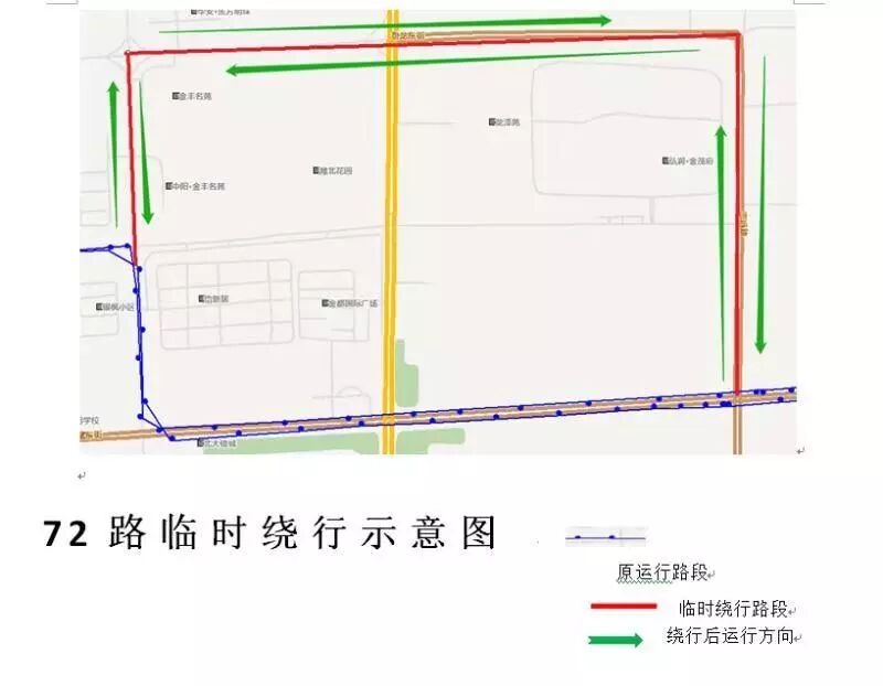 72路由公交王谭枢纽站发往坊子汽车南站(潍坊北海中学)上行方向:车辆沿原线路运行至志远路桐荫街路口后,沿志远路-卧龙街-银枫路-桐荫街西行恢复原线路运行。(下行方向反之亦然)