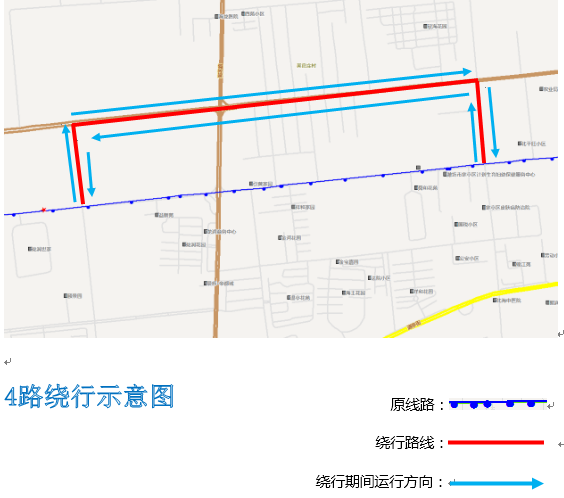 4路由杨家埠民俗大观园发往人民医院东门下行方向:车辆沿现运行路线运行至益新街友谊路路口后,沿友谊路-民主街-白云路-益新街西行恢复原线路运行。(上行方向反之亦然)